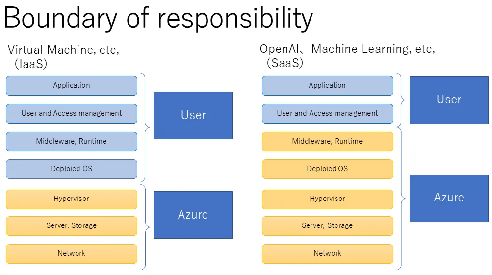 UTokyo Azure is a cloud service that uses resources from Microsoft Azure services, and the boundary of responsibility varies depending on the service used.